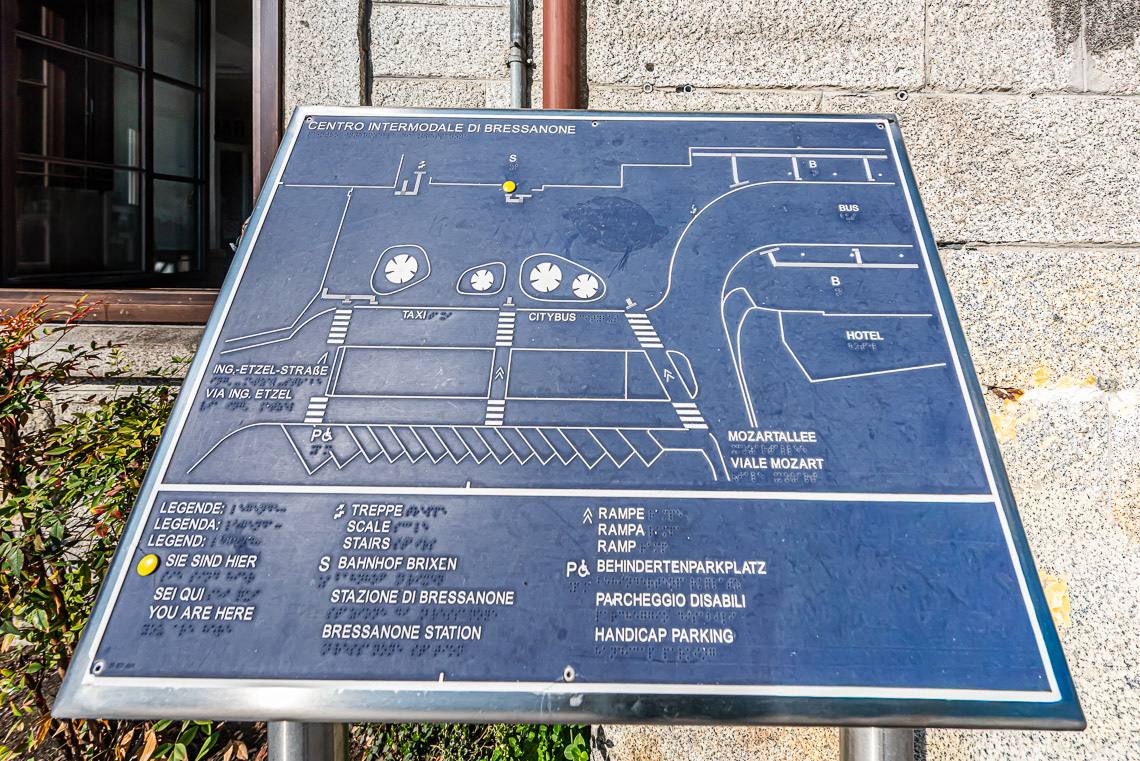 Der Bahnhof von Brixen ist zugänglich, aber die Bahnsteige sind nicht erhöht d.h. nicht an die Niederflurzüge der Südtirolbahn angepasst.