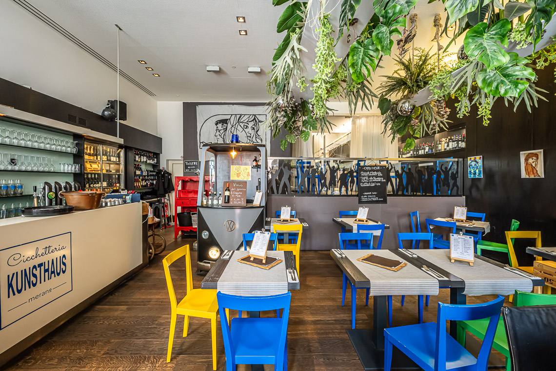 Die „Cicchetteria Kunsthaus Tapas“, die an das Museum für zeitgenössische Kunst Merano Arte angeschlossen ist, ist ein gemütlicher Treffpunkt im Herzen der Stadt. Das Lokal zeichnet sich durch eine einladende, stilvolle Atmosphäre aus und bietet ein kulinarisches Erlebnis mit kleinen Gerichten im Tapas-Stil, die sich ideal zum Teilen eignen. Das gastronomische Angebot wird durch eine hervorragende Weinauswahl und einen aufmerksamen Service ergänzt. Dies macht das Bistro zum perfekten Ort für einen Aperitif oder einen entspannten Abend in einem künstlerischen und internationalen Ambiente.