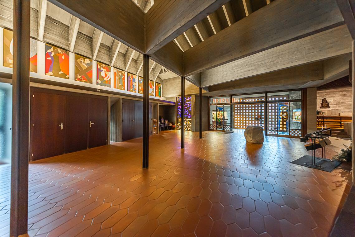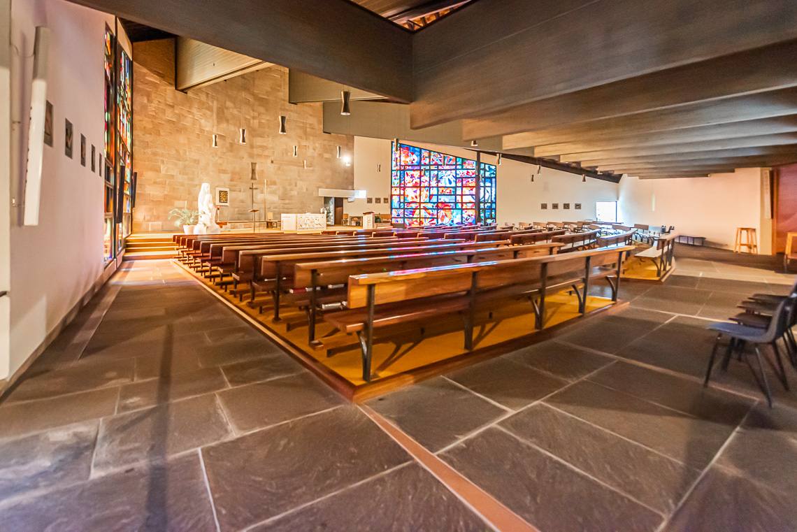 Die Pfarrkirche ist über eine kurze Steigung von 12% erreichbar. Die Türen sind breit und alle Bereiche sehr geräumig und barrierefrei.