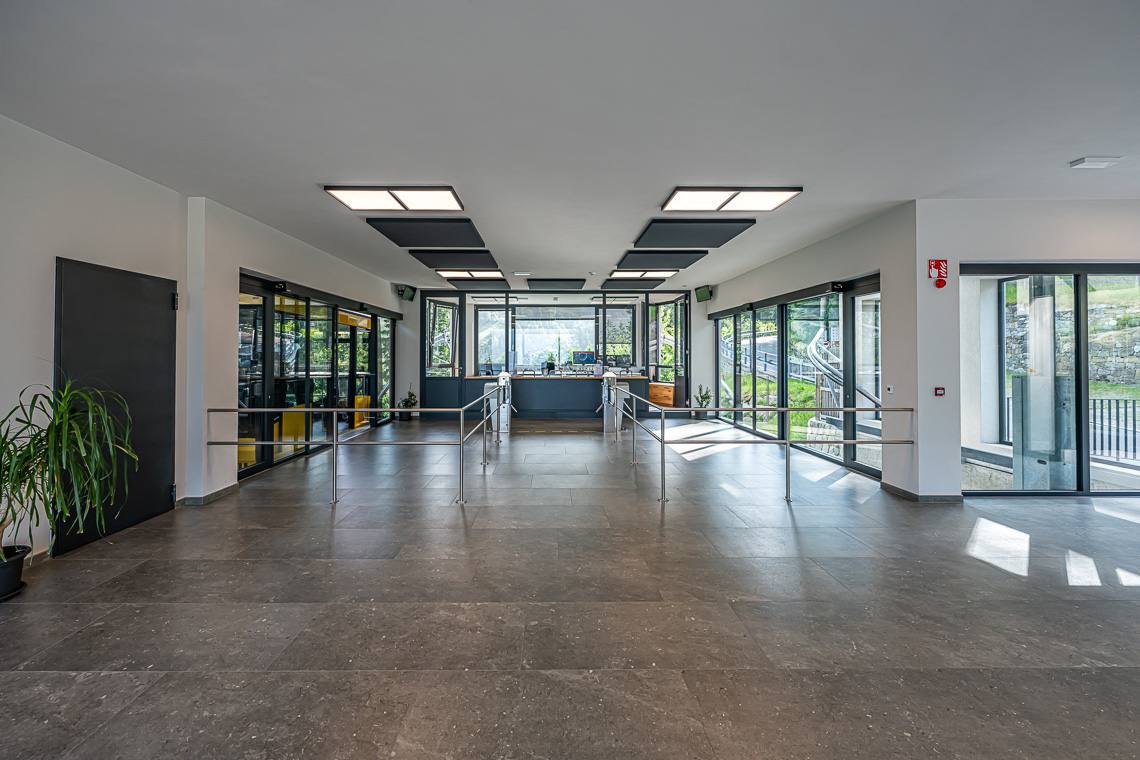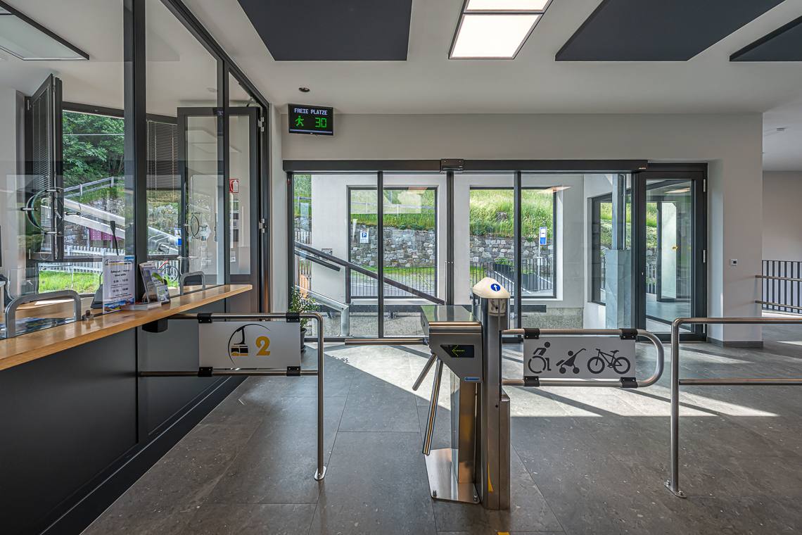 Il parcheggio e il percorso di accesso alla stazione a valle presentano una pendenza media dell'8%. Una comoda rampa garantisce l'ingresso senza gradini alla struttura e alla biglietteria. È presente un servizio igienico spazioso che tuttavia non consente l'accostamento laterale al WC a causa della presenza di un orinatoio; si segnala inoltre l'assenza dei maniglioni di sostegno. Presso la stazione a monte, l'ingresso presenta una pendenza del 6%. È disponibile un bagno ampio e fruibile, nel quale però non sono previsti i sostegni a parete.