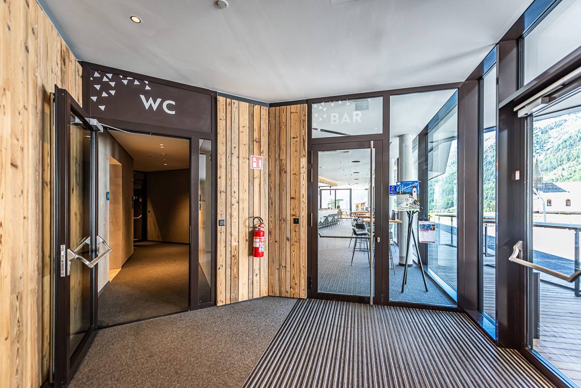 L’accesso alla funivia Val Senales è estremamente comodo: si raggiunge attraverso un percorso completamente asfaltato che conduce a un moderno e spazioso ascensore. Questo ascensore porta direttamente all’ingresso della cabina, tramite un passaggio ampio e riservato alle persone con disabilità. La cabina è grande e confortevole, e in pochi minuti si arriva a oltre 3200 metri di altitudine sul ghiacciaio. Anche in quota, l’accessibilità è garantita grazie ad ascensori e rampe, alcune delle quali sono brevi ma con una pendenza significativa, comunque funzionali. Il bagno si trova comodamente all’uscita dell’ascensore.