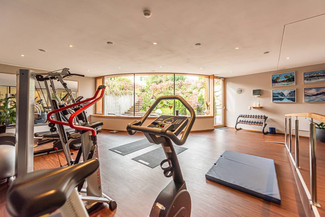 Note: La sala fitness è raggiungibile tramite una rampa. Dal fitness si può uscire nel piccolo cortile e accedere alla sauna finlandese panoramica (evitando così i due gradini).