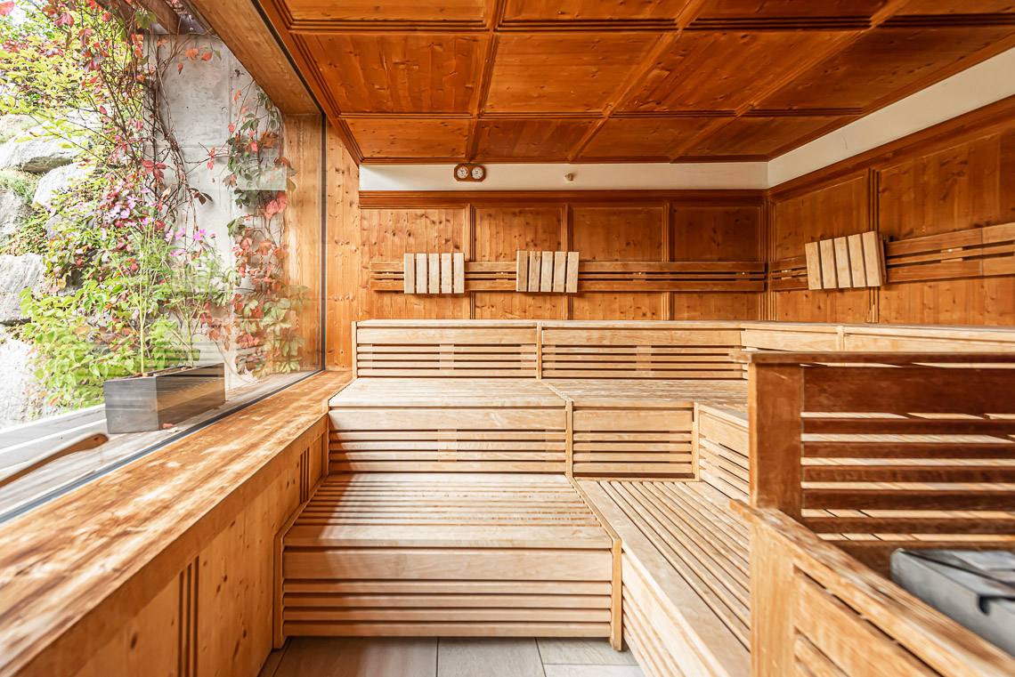 L'hotel dispone anche di una grande sauna panoramica di recente costruzione raggiungibile superando due gradini o passando attraverso la sala fitness (rampa), uscendo nel cortile interno.