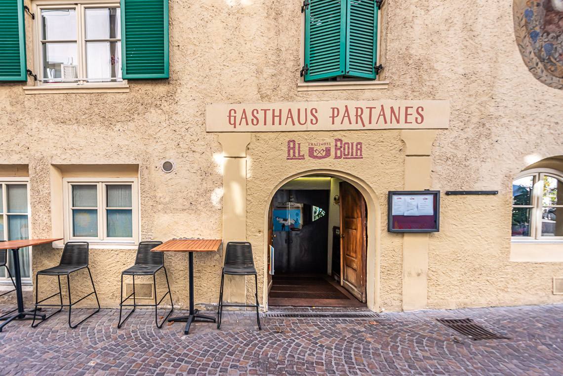 La trattoria Al Boia Partanes è situata nel Centro Storico di Merano, sulla Piazza Duomo superiore, di fronte al Palais Mamming Museo – nei pressi della Chiesa Parrocchiale San Nicolò, dei Portici e a due passi dalle rinomate passeggiate lungo Passirio di Merano.