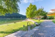 Note: Dall'ingresso l'ospite può facilmente raggiungere (leggere pendenze) le piscine e il pontile principale.
