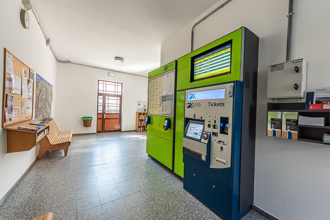 Note: Ci sono 4 posti auto destinati a persone con disabilità. Con una comoda rampa si raggiunge il binario 1. I binari 2 e 3 sono raggiungibili con un sottopassaggio e 2 ascensori. Il percorso è dotato di linee tattili per l'orientamento di persone ceche o ipovedenti.